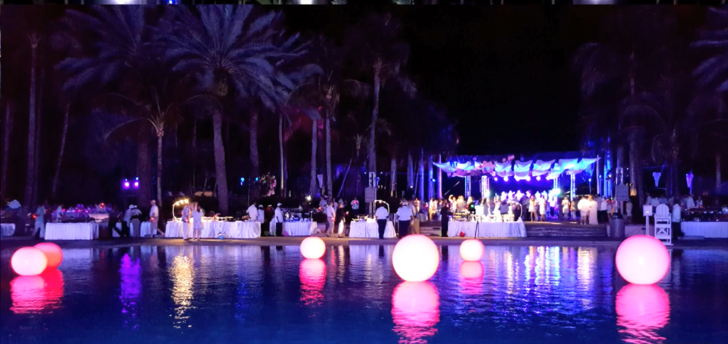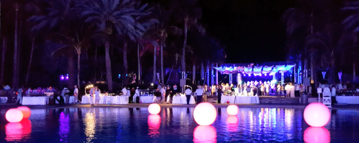 Interactive Light-UP LED Glow Balls from 18in/24in/36in that can be used as décor or bounced around a room. The lights are controlled using LED control technology so that the colors can be chosen and made to sync to music or blink to the beat or they can be random and fully live controlled. Imagine using these clustered in your pool which is anchored by a weight so that they stay in place and can be fully controlled. You can also place them throughout the pool to enhance the evening festivities. Add a touch of elegance to your event with TLC glow balls.